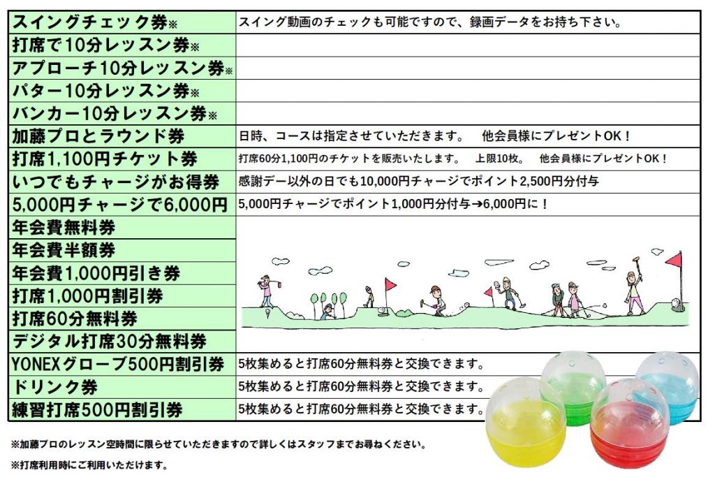 ドキドキ?ワクワク? 何がでるのか?  打席利用の会員様、キャンペーン期間中はご来場の際必ず1日1回まわせます?