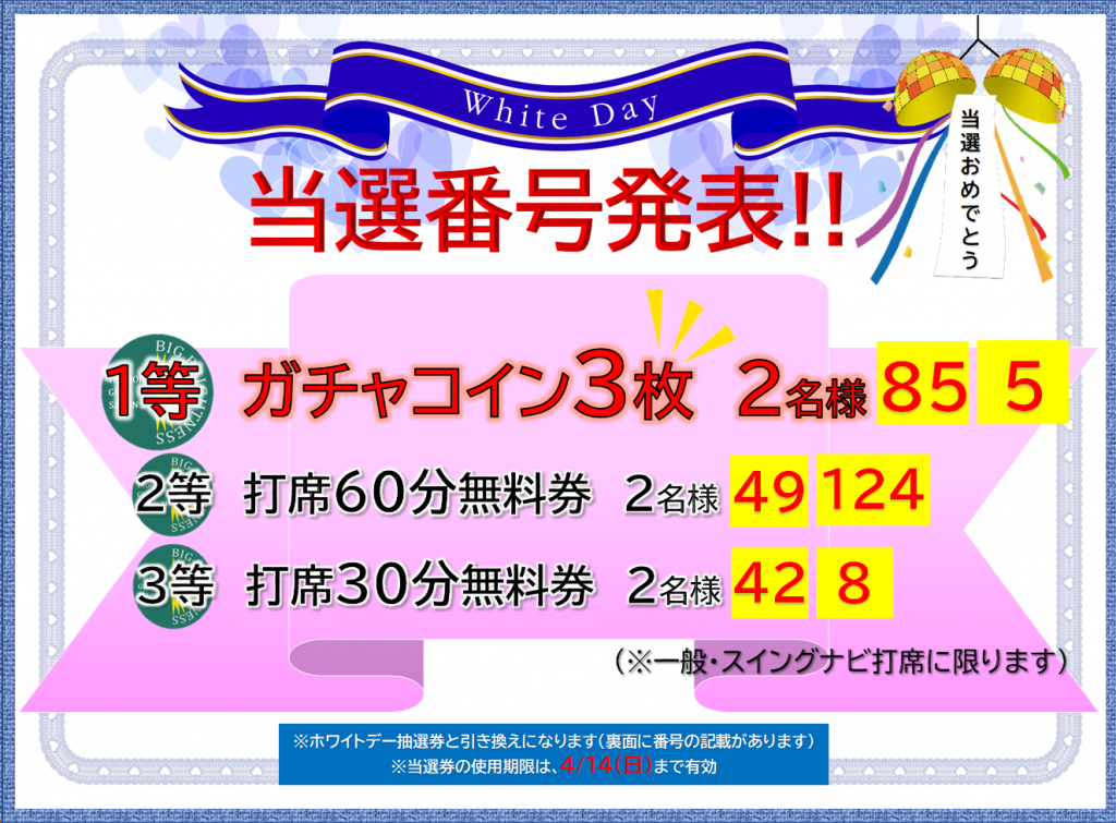 2024/03/15 おめでとうございます💁🏻♀️みなさん❗どうでしたか❓❓ 当選した方は、4/14(日)までに引換えてくださいね?(抽選券が必要です) ガチャガチャを3回まわせるなんて、なんだかドキドキしちゃいますね