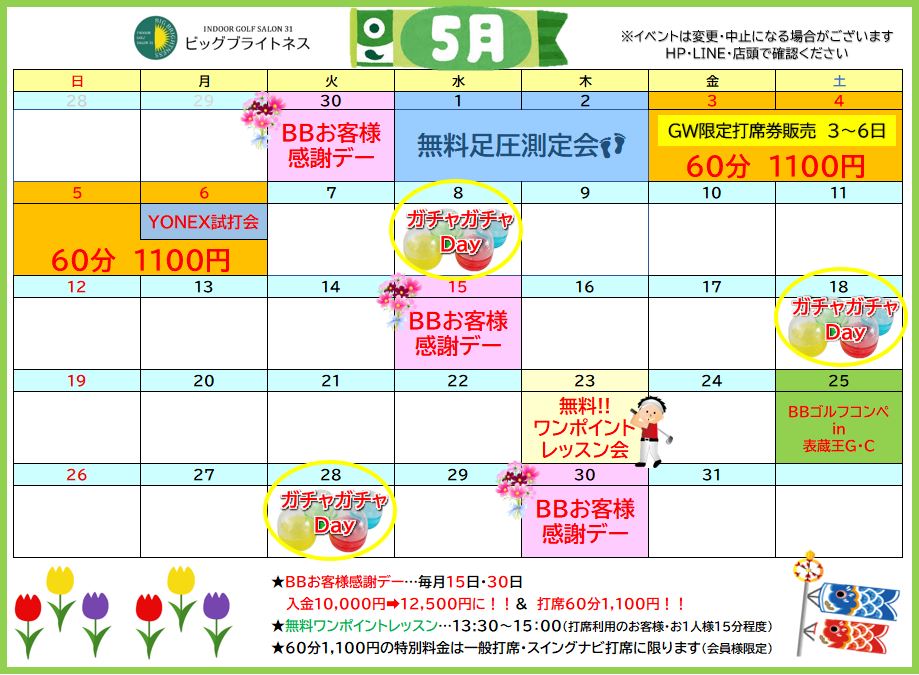 🍀BB5月のイベントカレンダー🍀