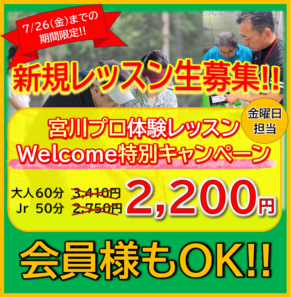 以前他のレッスンプロで体験レッスンした事のある会員様も、今なら宮川プロの体験レッスンが割引で受講可能ですよ🤩