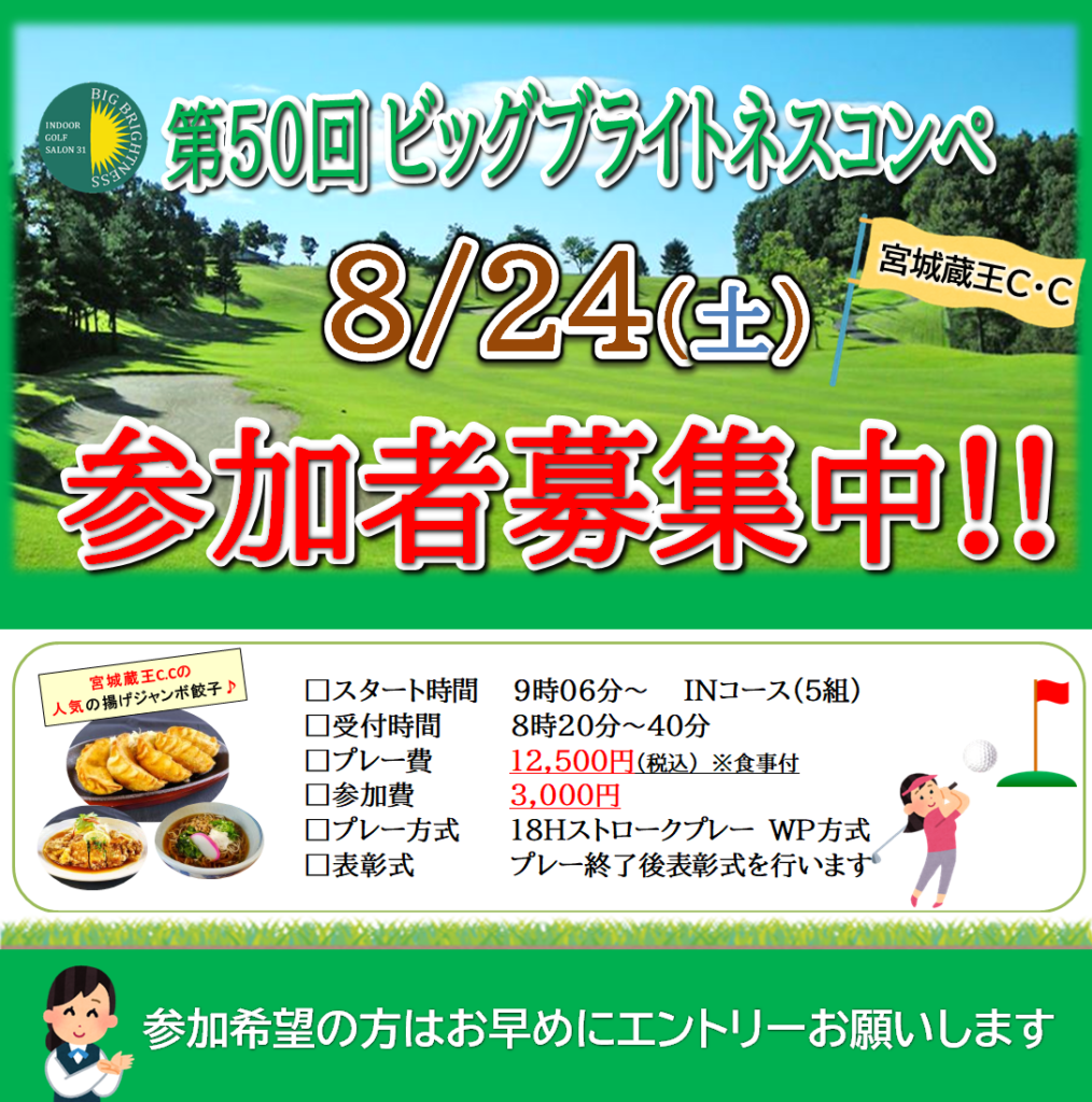 8/24(土)第50回ビッグブライトネスゴルフコンペのご案内🏌🏻‍♂️