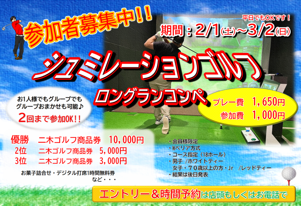 シュミレーションゴルフロングランコンペ 只今参加者募集中です❗❗