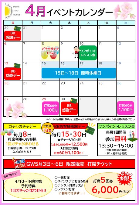 ※特別料金やイベントは、会員の方限定です。ゲストの方は通常料金となります。