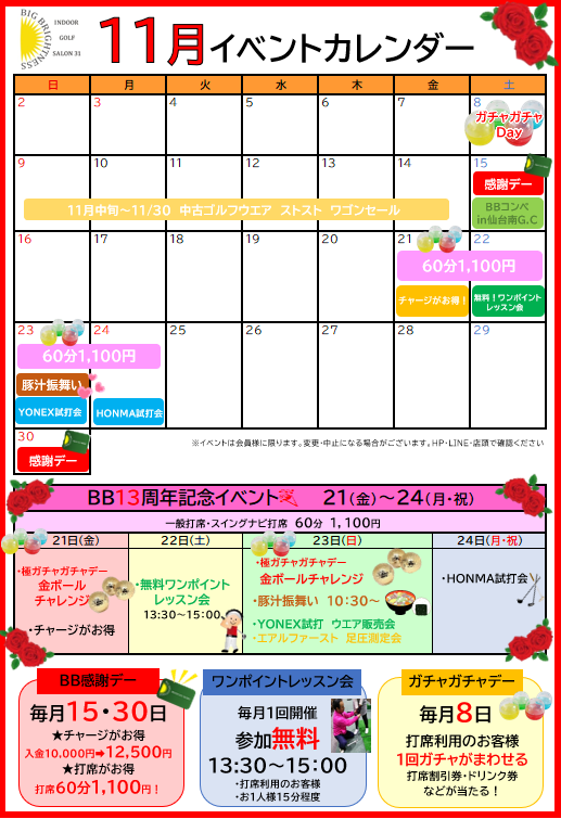 🎉11月のイベントカレンダー🎉