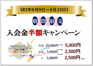 ?期間限定・入会金半額キャンペーン!!