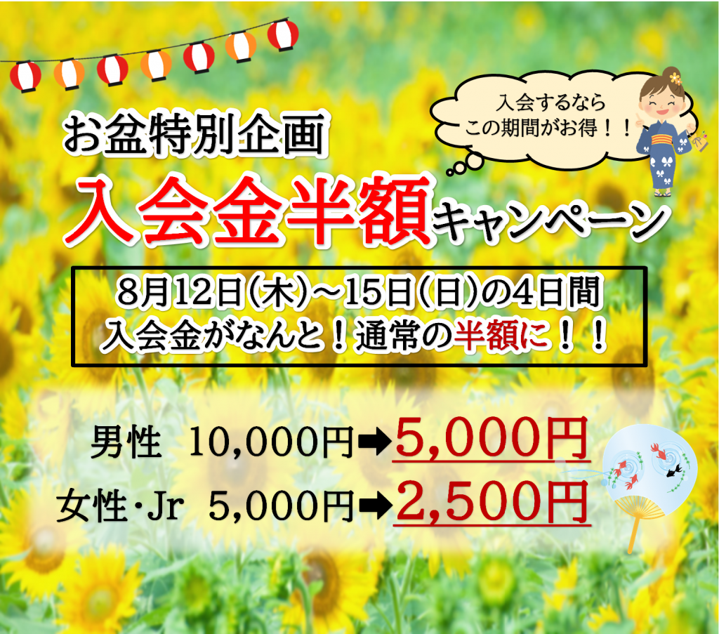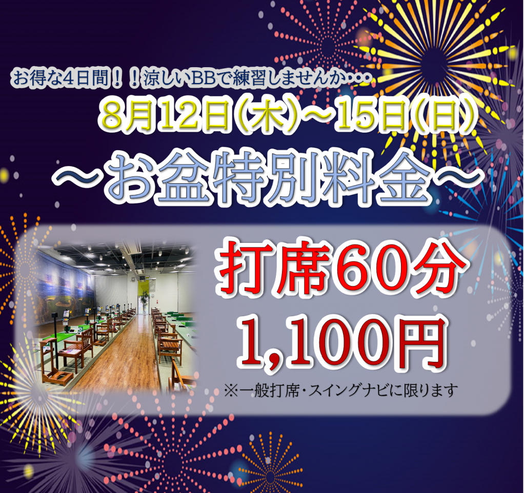 8/12(木)~8/15(日)のお盆期間、打席特別料金&入会金半額 今年もやります?